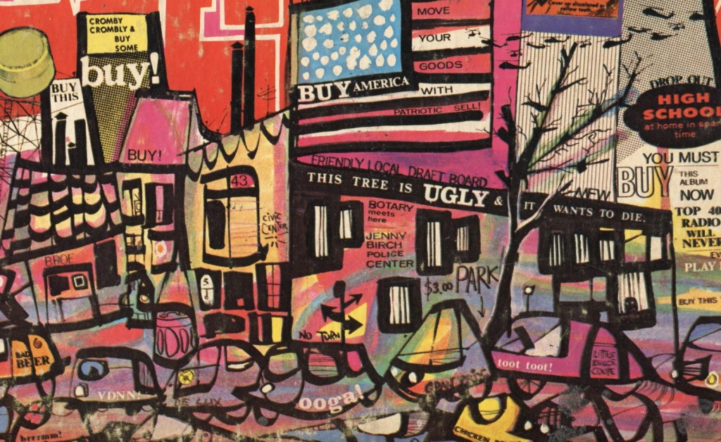 Forty plus non-stop minutes of full-on everything, by which I mean jazz, doo-wop, rock and roll, pop, avant-noise, fun. Which, if you’ve only got seven and half minutes to spare, can pretty much all be found in Brown Shoes Don’t Make It – rude and crude and musically sharp as a diamond. Uncle Frank (both with and without his Mothers) would, of course, go on to release more music than some entire nations over the next twenty plus years, but for my money, he’d never top the fierce and funny fabulousness of what happened here.” (Philip Random)
